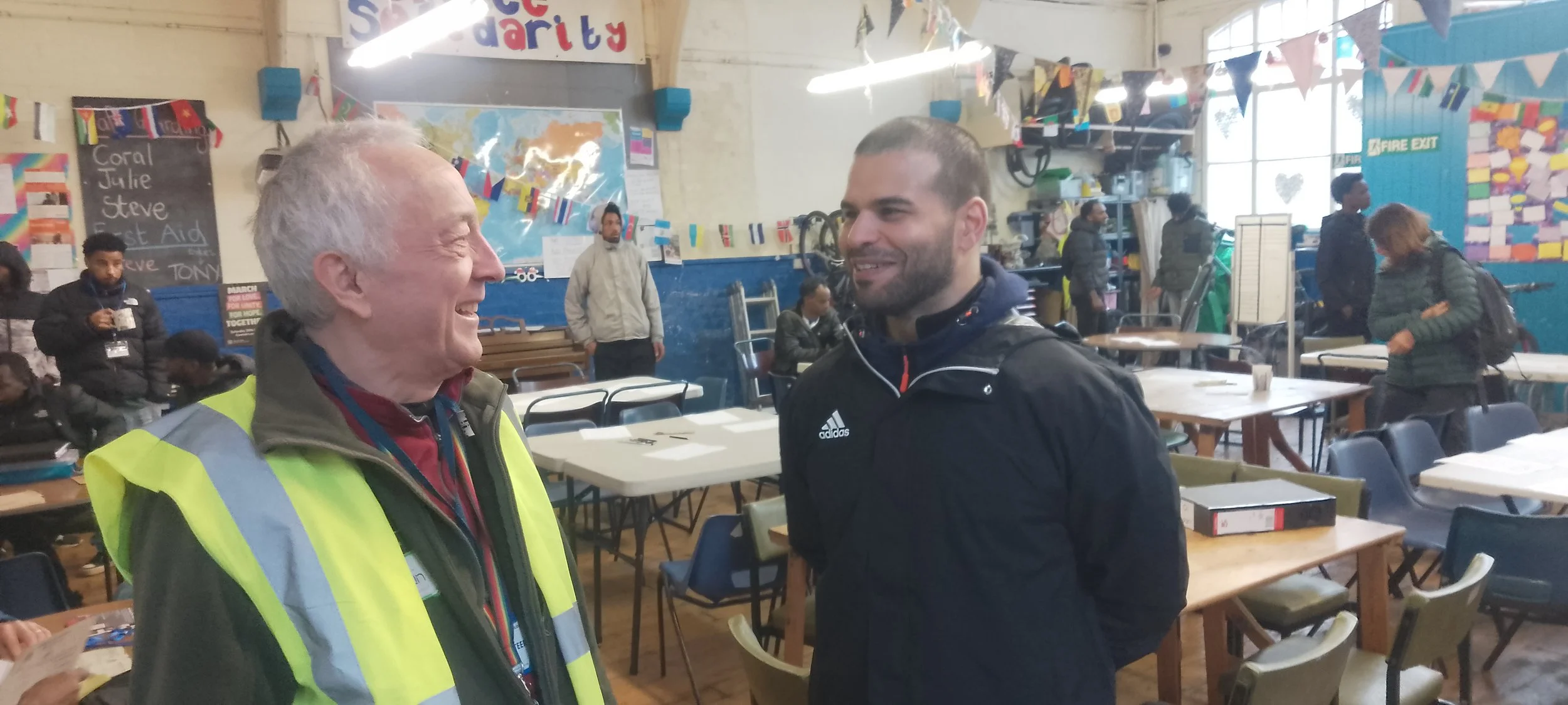 He's sleeping on the floor of a homeless hostel.